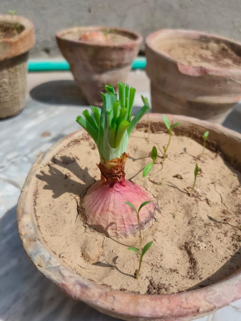 You can grow onions at home from kitchen scraps or small onion bulbs. Place the root ends in water or soil, keep them in a sunny spot, and they’ll regrow fresh green tops in just a few days.